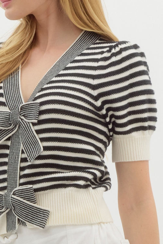 Ellison Black Striped Bow Cardigan Top - FINAL SALE