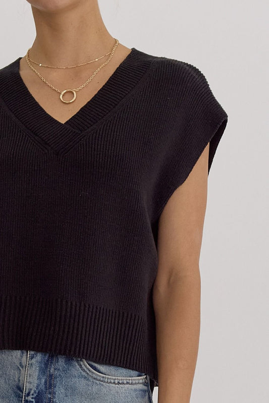 Elyse Black Sweater Vest Top - FINAL SALE