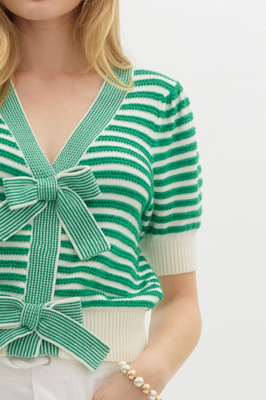 Ellison Green Stripe Bow Cardigan Top - FINAL SALE