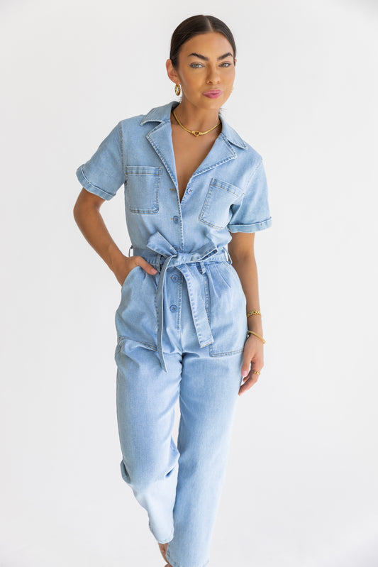 Kendall Chambray Washed Utility Jumpsuit - FINAL SALE