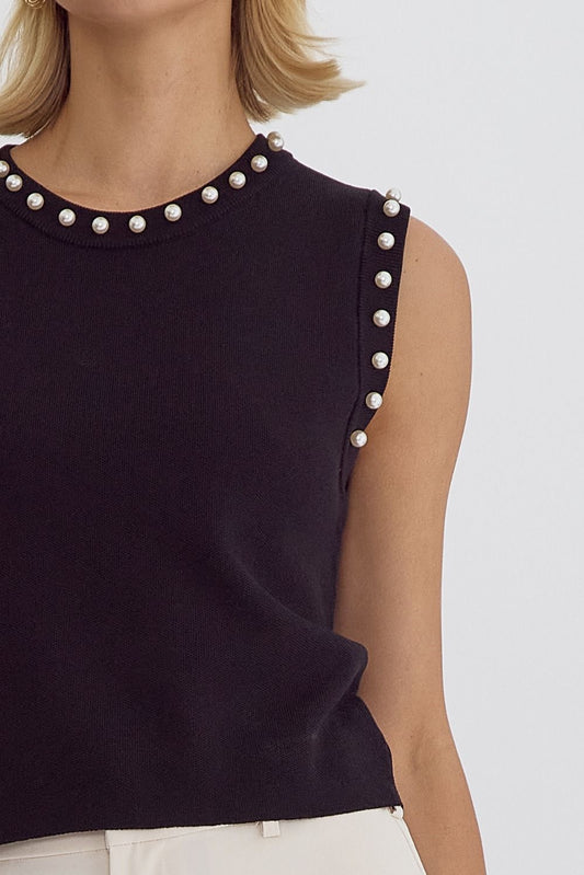 Kinsley Black Pearl Detail Top - FINAL SALE
