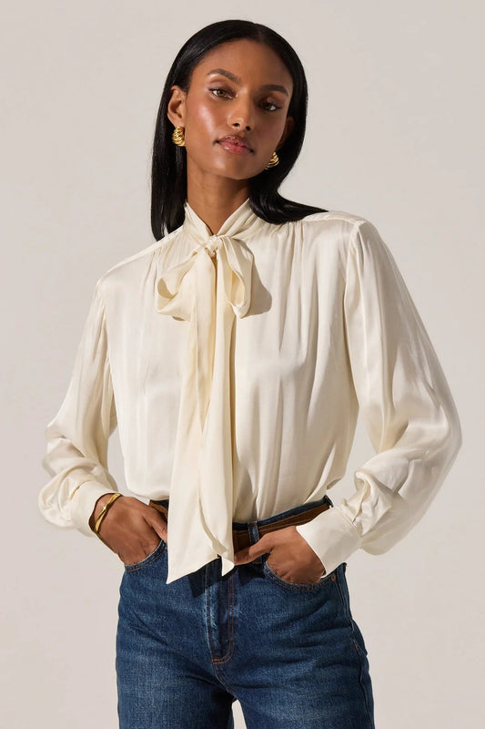 Mabry Cream Satin Tie Top