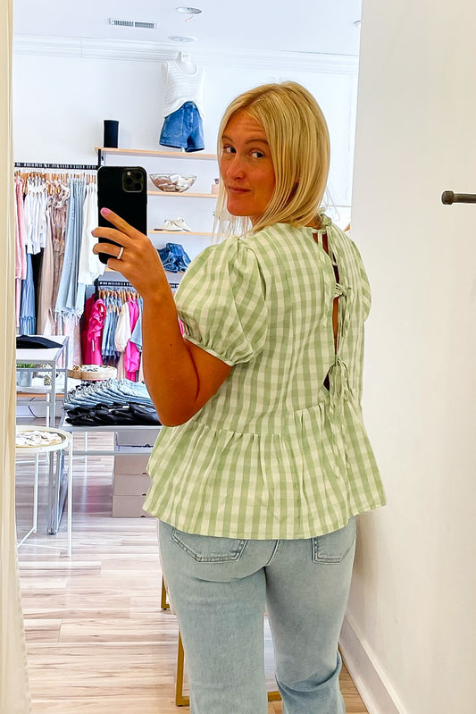 Madi Sage Gingham Babydoll Top - FINAL SALE