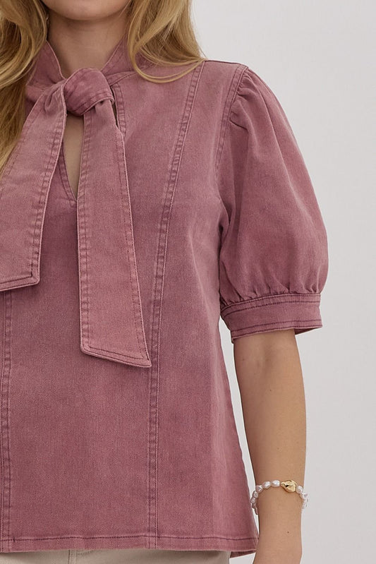 Mali Rose Denim Tie Neck Top - FINAL SALE