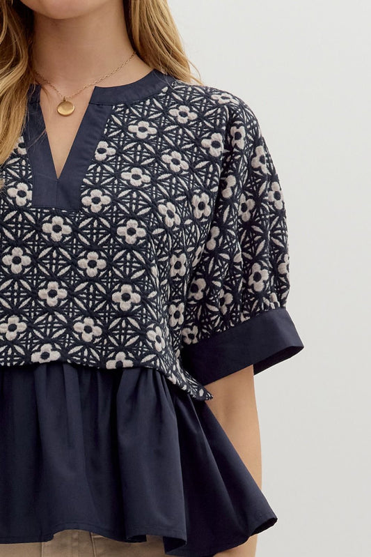 Sold outMadina Navy Jacquard Peplum Top