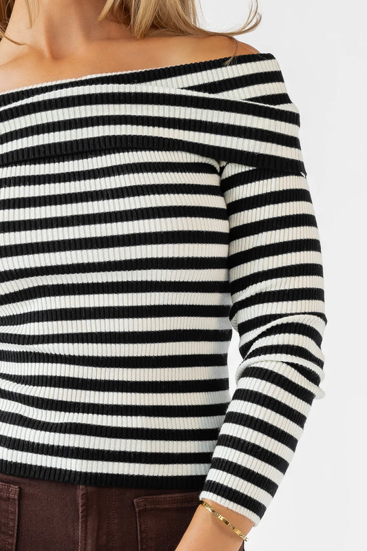 Priscilla Black Stripe Off The Shoulder Top