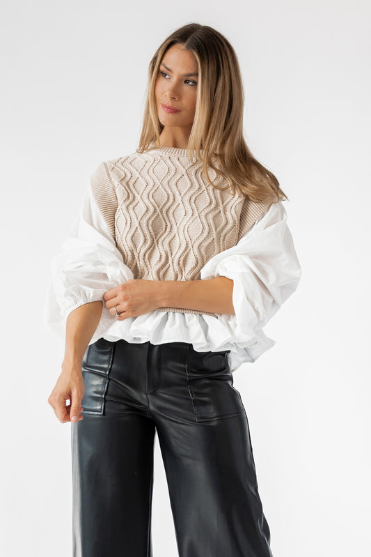 Reeve Taupe Sweater Poplin Top - FINAL SALE