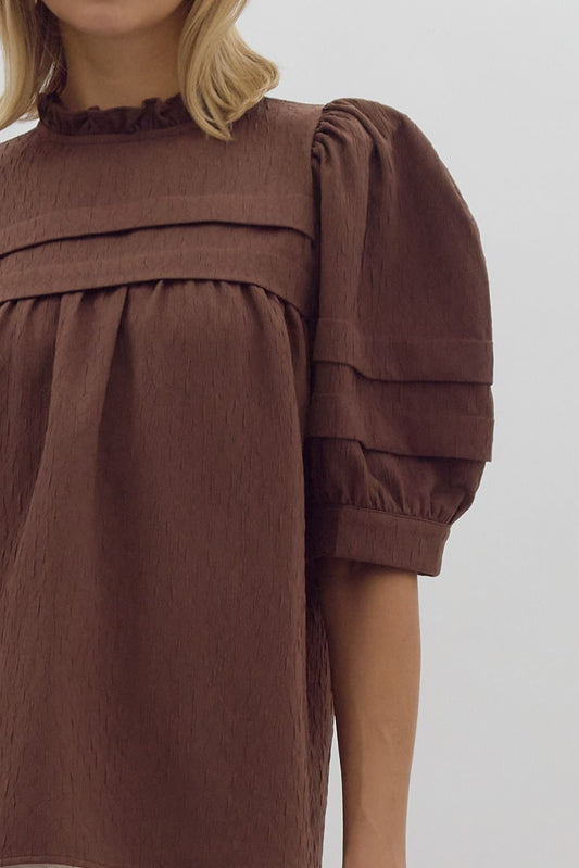 Reyna Brown Textured Peasant Top - FINAL SALE