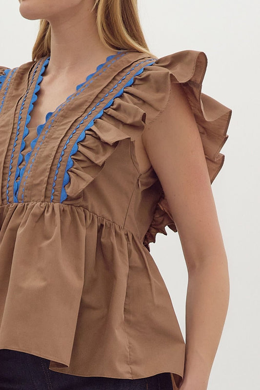 Willow Mocha Ruffle Shoulder Top - FINAL SALE