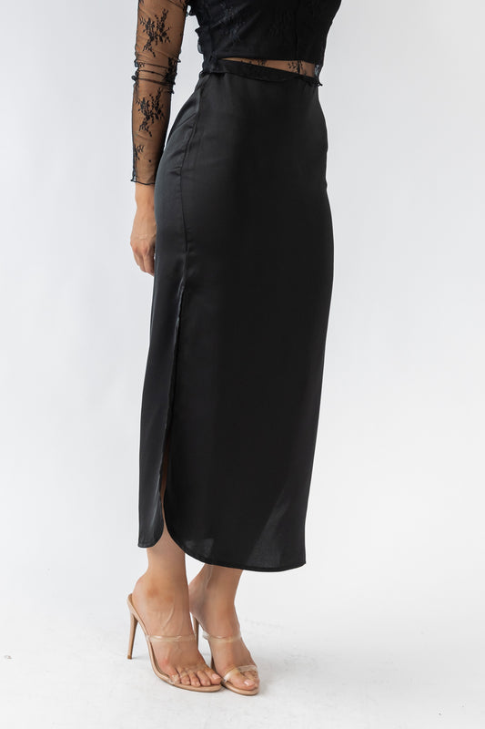 Dayton Black Satin Midi Skirt - FINAL SALE