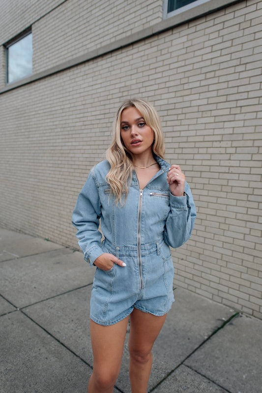 Denim Dreamland Light Wash Denim Romper - FINAL SALE