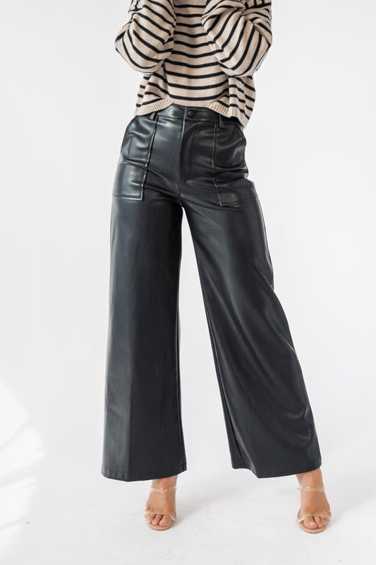 Moira Black Leather Wide Leg Pants - FINAL SALE